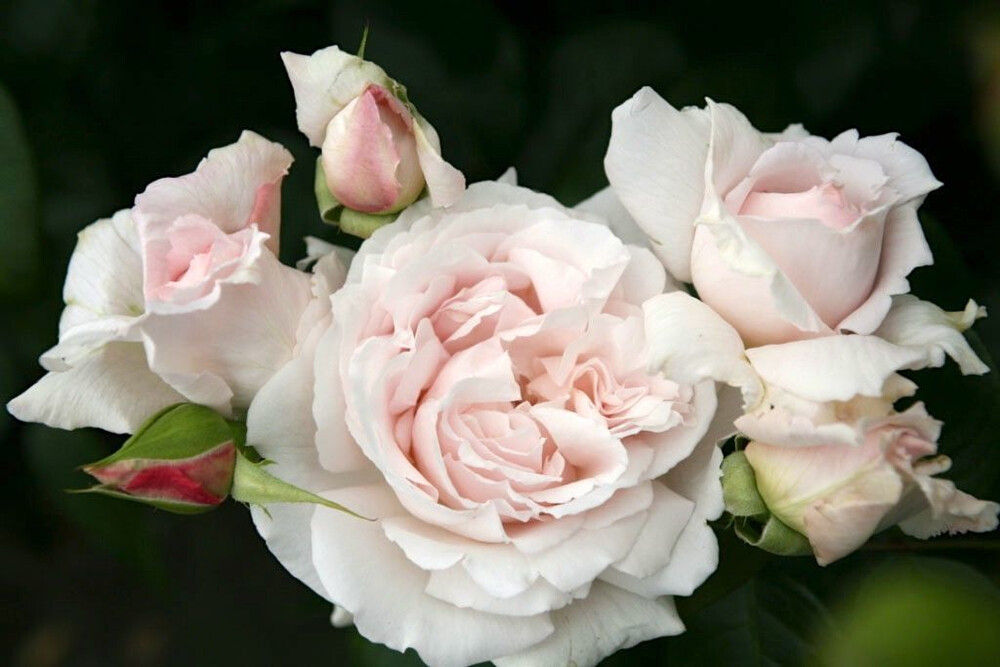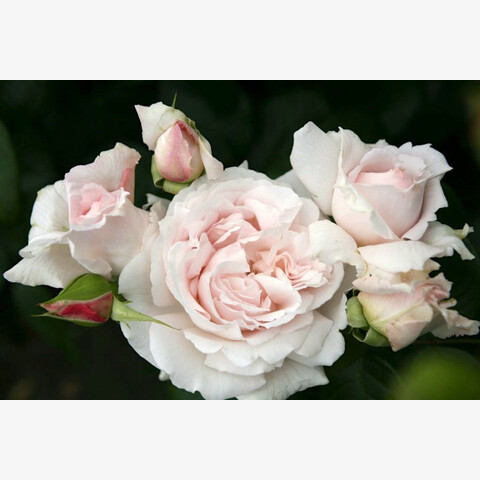 Цветки расположены на стеблях по 5-10 штук в соцветиях. Они имеют диаметр около 8 см и отличаются бледной насыщенностью цвета. Бутон при раскрытии образует кремовый центр, который перетекает в нежно-розовую окраску лепестков.