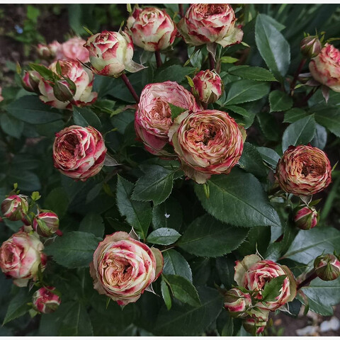 Голландская разновидность – это растение с прямостоячими побегами, достигающими высоты в 80-100 см. У розовых кустов хорошая ветвистость, малое число острых шипов на стеблях, умеренная облиственность темно-зеленой листвой с четким блеском и зазубренными краями, а также стержневая корневая система, проникающая глубоко в почву. Смотрится куст объемно, хотя диаметр не превышает 50-70 см. В вегетационный период на крепких и удлиненных стеблях образуются пышные бутоны, которые могут быть посажены и одиночно, и в малоцветковых соцветиях по 2-3 экземпляра.