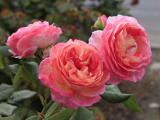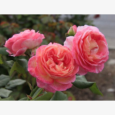 В закрытом виде цветки имеют шаровидную форму. А вот форму раскрывшихся цветков обозначают как старинную. Диаметр от 6 до 8 сантиметров указывает на средние размеры. В одной розе собрано от 17 до 25 красочных лепестков. Бутоны растут в соцветиях по 3-5 штук на каждом побеге (малоцветковые соцветия). Особенность сорта Мадам де Сталь – сильный фруктовый аромат.