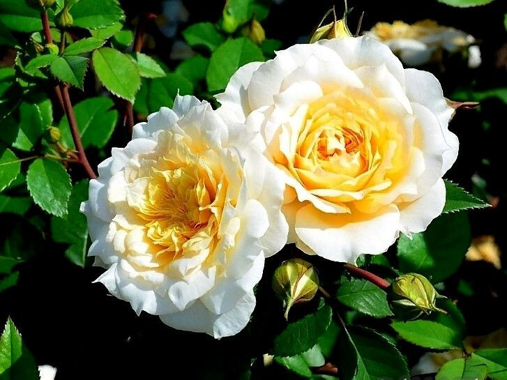 Растение вырастает до 180-200 см в высоту и до 150 см в ширину, образуя густой, куполообразный куст. Листья розы темно-зеленые и глянцевые, что придает им особый шарм.