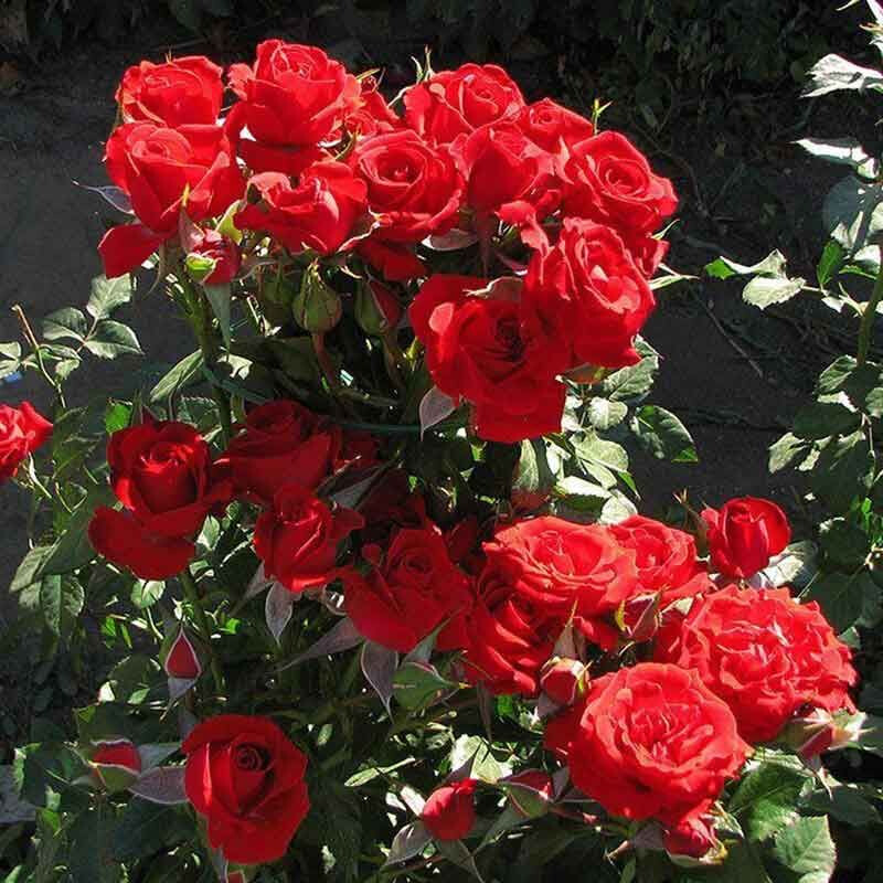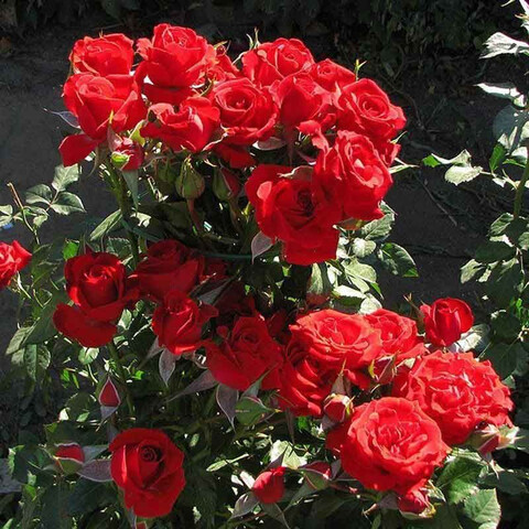 Кусты культуры прямостоячие, компактные, полураскидистые, обильноцветущие, высотой 50-70 см и шириной 50-60 см. Окрас средних по размерам листочков насыщенно-зелёный, а поверхность глянцевая. В период цветения кустики реально усыпаны значительным количеством малых ярко-красных розочек, это выглядит свежо, изысканно и стильно, что характерно для роз этой группы. Размер аккуратных цветков примерно 4-5 см, они классической бокаловидной конфигурации и располагаются на ветвистых цветоносах различной длины по 3-5 шт. Источаемый ими аромат мягкий, приятный и ненавязчивый, с фруктовым оттенком. В саду он слабо выражен, но в срезке отчётливо ощущается, придавая розе неповторимое обаяние.