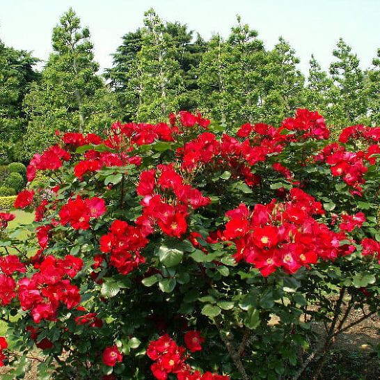 Куст рослый, сильный, высотой до 1,5-2 м. В средней полосе это обычно рослый куст почти в человеческий рост, в Европе сорт успешно пускают по опорам как компактную плетистую розу. Куст склонен расти вертикально, имеет относительно небольшое число базальных ветвей, которые быстро набирают хорошую длину. Ветвится средне, но ветви прочные. Куст не разлапистый, элегантный, чего обычно от ругозы не ожидают. Листва очень красивая, ярко-зеленая, блестящая. Побеги сильно колючие, колючки длинные, поэтому все работы с растением лучше проводить в перчатках.