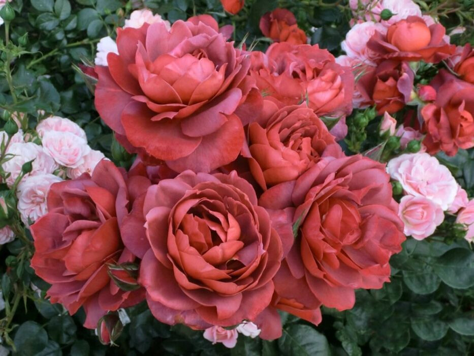По размеру цветки крупные, одиночные в соцветиях, а аромат у них слабый и мягкий. Куст относится к сильнорослым, средняя высота, как уже отмечалось, метр с небольшим (чаще всего фигурирует число 120 см), ширина куста достигает 80 см. Листья очень крупные, на стебле есть шипы, их много. У растения средняя устойчивость к дождю, но высокая – к морозам (зона морозостойкости –17… 23 градуса).