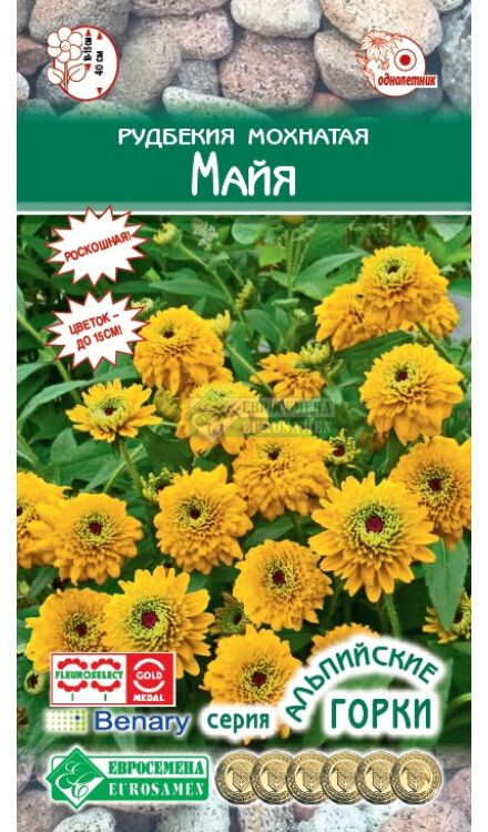 РУДБЕКИЯ получила довольно обширное распространение в садах, но каждый раз не устаешь любоваться желто-коричневыми, золотистыми, бордово-коричневыми "ромашками", махровыми и нет, компактными либо низкорослыми. Это декоративное растение, получившее название за свой колючий шерстистый стебель и культивируемое как однолетник, в середине лета заявляет о себе во всю мощь, раскрывая свои огромные цветки. Майя- самый распространенный вид рудбекии, но от этого не менее привлекательный, имеет густо - махровые цветы, которые сплошь покрывают компактное растение. Окраска цветков золотисто-желтая. Характеризуется продолжительным цветением до заморозков. Отлично смотрится при одиночной посадке в вазоны или на комбинированных клумбах, в садах в сельском стиле, а в альпинариях и рокариях просто неотразима. Высота-40 см Диаметр цветка-до 15 см