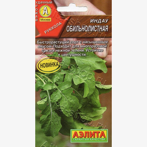 Быстрорастущая зеленная культура с насыщенным острым вкусом. Отличительной особенностью сорта является повышенная устойчивость к ранней цветушности и возможность многоразовой выборочной срезки. Это сокращает до минимума необходимость изнурительных повторных посевов индау (рукколы) для получения нежной зелени в течение лета. Через 3-4 недели от всходов растение образует пышную розетку крупных сочных листьев, которые нужно срывать регулярно. Сорт великолепен в овощных и теплых мясных (рыбных) салатах, придает им неповторимую нотку свежести и пикантности.