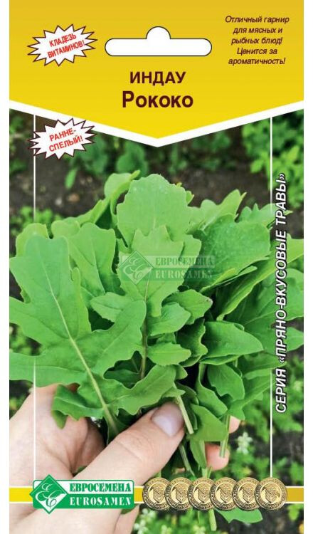 Индау (Рукола) – отличный гарнир для рыбных и мясных блюд! Рукола, благодаря своим полезным свойствам, может заменить многие лекарства. Регулярно употребляя эту зелень можно надолго забыть о простудах и упадке сил. Она чемпион среди всех зелени по содержанию витаминов С, В9, йода, магния, калия и железа. Употребление её в свежем виде повышает уровень гемоглобина в крови и способствует выведению плохого холестерина. Свежая ароматная зелень используется при приготовлении витаминных салатов, бутербродов, отлично сочетается с рыбными и мясными блюдами. Семечки и стебли используются широко в соленьях. Придает изюминку и пикантность, которую так любят гурманы. Раннеспелый, широколистный сорт. Период от полных всходов до уборки зелени 20-25 дней. Розетка листьев высотой 12-18 см, лист среднего размера, зеленый с гладкой поверхностью, дуболистного типа, слегка зазубренный по краю. Масса одной розетки 25 г. Ароматичность сильная, вкус острый!