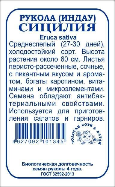 Среднеспелый холодостойкий сорт. От всходов до начала сбора зеле-ни 27-30 дней. Высота растения около 60 см. Листья перисто-рассеченные, сочные, с пикантным вкусом и ароматом. Используют при приготовлении салатов, в качестве острой приправы и гарнира. Семена обладают антибактериальными свойствами. Возможно выращивание в качестве горшечной культуры.