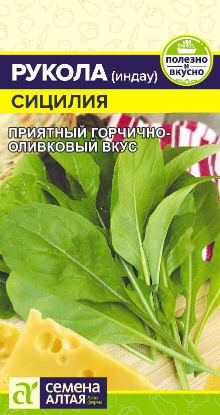 Среднеспелый холодостойкий сорт. Период от полных всходов до начала хозяйственной годности 27-30 дней. Высота растения 60 см. Лист лировидный, перисто-рассеченный, зеленый. Цветки желто-белые с фиолетовыми прожилками. Урожайность зеленой массы 2,5-3 кг/кв.м. Рукола ценится за приятный горчично-оливковый вкус, который прекрасно сочетается с любыми свежими овощами, мясом, морепродуктами. Она не только вкусна, но и чрезвычайно полезна. Зелень богата каротином, железом, йодом, цинком. Регулярное употребление рукколы повышает уровень гемоглобина, налаживает обменные процессы, укрепляет нервную систему. Место посадки: предпочитает плодородные, нейтральные, рыхлые почвы. Хорошими предшественниками являются: томаты, перцы, баклажаны, морковь Освещение: обильное, выносит затенение Предпосевная подготовка: не требуется, для более ранних и дружных всходов перед посевом можно замочить семена на 10-15 минут в воде температурой +50°С Сроки посева: в открытый грунт при прогревании почвы до +10...12°С (в зависимости от региона, с апреля по август). Посев на рассаду проводят для получения более раннего урожая в марте. Для выращивания в качестве контейнерной культуры посев можно проводить в любое время года Посев на рассаду и в качестве контейнерной культуры: лучше высевать в отдельные емкости объемом не менее 0,5 л на уплотненный увлажненный грунт (можно пролить кипятком для обеззараживания), семена заделывают на глубину 0,5-0,8 см, увлажняют, накрывают прозрачной пленкой или стеклом до появления всходов. Пикировка не требуется Посев в грунт: можно проводить каждые 2-3 недели. Высевают на уплотненный влажный грунт пучками или в бороздки на глубину 0,5-0,8 см, оставляя междурядья 15-20 см, посевы еще раз увлажняют и накрывают агроволокном до появления всходов Высадка рассады в грунт: конец апреля - начало мая, посадочное расстояние 15-20 см Уход: для защиты всходов от крестоцветной блошки укрывают агроволокном. Требовательна к поливу: при недостатке влаги зелень грубеет. При наличии дефицитов питания вносят минеральные подкормки Сбор урожая: проводят по мере отрастания зеленой массы. Следует срезать до образования цветоносов