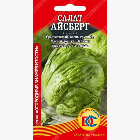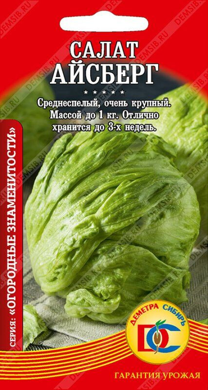 Среднеспелый (70-80 дней) сорт кочанного салата. Листья темно-зеленые, слабоволнистые, хрустящие, великолепного, слегка сладковатого вкуса, собраны в плотный округлый кочан крупных размеров, массой 300-400 гр (до 1 кг). Сохраняет свежесть и отлично хранится до 3-х недель. Устойчив к цветушности. Используется для потребления в свежем виде, как источник минеральных солей, витаминов и микроэлементов.