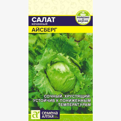 Великолепный сорт салата с хрустящим типом листа. Период от всходов до технической спелости 60-75 дней. Не стрелкуется. Формирует крупный плотный кочан, диаметром 10-15 см. и массой 300-600 г. Листья гофрированные с волнистыми краями, сочные, пузырчатые, хрустящие, нежные. Богат витаминами, минералами и клетчаткой. В срезанном виде совершенно не боится холода и сохраняет свежеть в холодильнике около недели. Используют в пищу в свежем виде, как для приготовления салатов, так и для оформления закусок и вторых блюд. Место посадки: предпочитает плодородные почвы с нейтральной реакцией. Лучшие предшественники: капуста, картофель, томат, огурец, морковь Освещение: обильное, в жару требуется затенение Предпосевная подготовка: не требуется Сроки посева: высевают в открытый грунт, когда почва прогреется до +12...15°С (с конца апреля, в зависимости от региона), можно высевать на рассаду за 2-3 недели до высадки в грунт. Посев на рассаду: высевают на увлажненный уплотненный грунт в горшочки диаметром 5 см, семена заделывают на глубину 0,5-1 см, накрывают стеклом или пленкой. Оптимальная температура для всходов +17...18°С Посев в грунт: высевают в бороздки на глубину 0,7-1,2 см, на предварительно увлажненный уплотненный грунт, оставляя междурядья 25-30 см. Для сохранения влажности рекомендуется укрыть посевы агроволокном до появления всходов. Всходы прореживают на расстояние 25-30 см Пикировка/перевалка: за неделю до высадки в грунт рассаду закаливают, снижая температуру и уменьшая полив. Рассада должна иметь 5-6 листов. После высадки в грунт обязательно притенение Уход: заключается в поливе, рыхлении междурядий, прополках, подкормках при необходимости Сбор урожая: можно начинать через 1,5-2 месяца после появления всходов. Передержка растения в грунте ведет к накоплению горечи в листьях. Хранить салат нужно при температуре не ниже +1°С