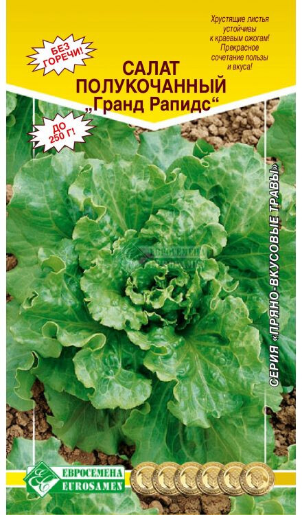 Среднеспелый, неприхотливый сорт полукочанного салата с сочными листьями зеленой окраски, без горечи, для открытого грунта и любых типов теплиц. От всходов до технической спелости 47–50 дней. Розетка листьев прямостоячая, диаметром 22 см. Лист среднего размера, округлой формы, тонкий, плотный, глянцевый, выпуклый, мелкопузырчатый, по краю сильно волнистый с мелкими частыми надрезами края в верхушечной части, с жилкованием веерообразным. Консистенция ткани листьев хрустящая. Кочан открытый, овальной формы, рыхлый. Масса розетки 220–250 г, в светокультуре 50–60 г. Урожайность 3,0-4,0 кг/м². Ценится за отличные вкусовые качества продукции, устойчивость к краевому ожогу листьев.