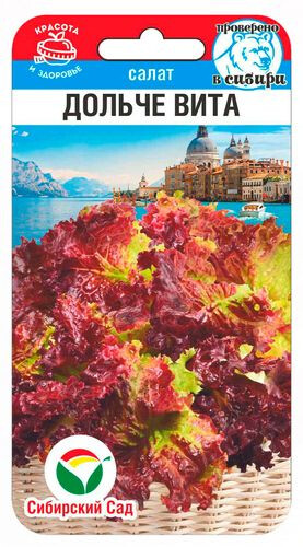 Листовой сорт типа Батавия с красивой цветной декоративной зелено-красной листвой. Не привередлив, не требует частого подсева. Относится к срывному типу долгоиграющих салатов - урожай формируется за счет постоянно отрастающих сочных наружных листьев. Является ценным источник многих минеральных веществ, витаминов и полезных антоцианов. Холодостойкий, светолюбивый, пригоден для весеннего и летнего выращивания на открытых грядах или парниках во всех регионах России. Розетка листьев средняя, полураскидистая с глянцевыми кучерявыми листьями по краю волнистыми, светло-бордовой окраски. Структура листьев хрустящая, вкус сладкий, хорошо сочетается с мясом, грецкими орехами. Рекомендуется для употребления в свежем виде, для приготовления салатов и украшения кулинарных блюд. Урожайность до 2,5кг/м2.