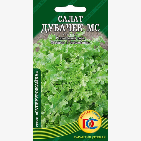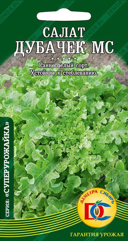Среднеспелый (38-50 дней) листовой сорт, для открытого и защищенного грунта. Розетка листьев полуприподнятая, диаметром 25-30 см. Лист светло- зеленый, слабопузырчатый, оригинальной формы, напоминает дубовый лист. Содержит комплекс витаминов и минеральных веществ. После срезки розетка листьев отрастает заново. Для потребления в свежем виде.