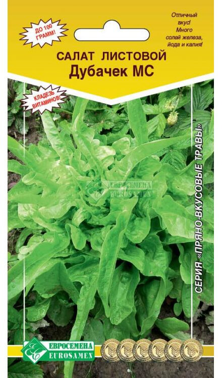 Листовой салат - уникальный по составу продукт. Популярность листьев салата в последние годы сильно выросло. И теперь их воспринимают не только как "листики для украшения" стола, а как сочный и отлично сочетающийся с другими овощами полезный диетический продукт. Разновидности листового салата более 1000 сортов, отличаются они друг от друга не только внешним видом, но и разнообразием микроэлементов и витаминов. Дубачек- среднеспелый листовой сорт. Период от всходов до технической спелости 38-40 дней. Листья светло-зеленые, продолговато-эллиптической формы, дольчатые, похожие на дубовые листья, после срезки снова отрастает. Масса растения 90-100 г. Возможны более поздние посевы летом, благодаря устойчивости сорта к цветушности.
