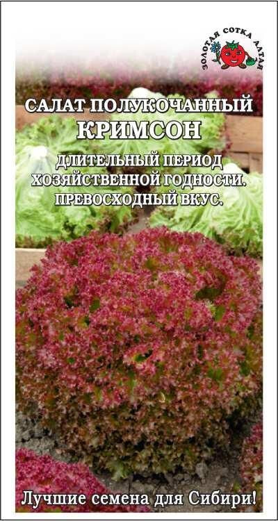 Ранний урожайный сорт для открытого грунта и теплиц, относящийся к сортотипу ЛОЛЛО РОССА. Розетки листьев высотой 15-16 см, диаметром20-25 см. Листья вишнево-красные, слабопузырчатые, сильноволнистые по краю, сочные и хрустящие, превосходного вкуса, без горечи. Сорт устойчив к цветушности, хорошо растет при любой длине дня и отличается длительным периодом хозяйственной годности.