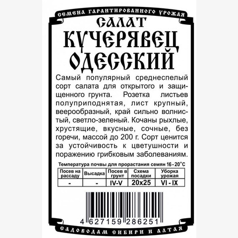 Самый популярный среднеспелый сорт салата для открытого и защищенного грунта. Розетка листьев полуприподнятая, лист крупный, веерообразный, край сильно волнистый, светло-зеленый. Кочаны рыхлые, хрустящие, вкусные, сочные, без горечи, массой до 200г. Сорт ценится за устойчивость к цветушности и поражению грибковым заболеваниям.