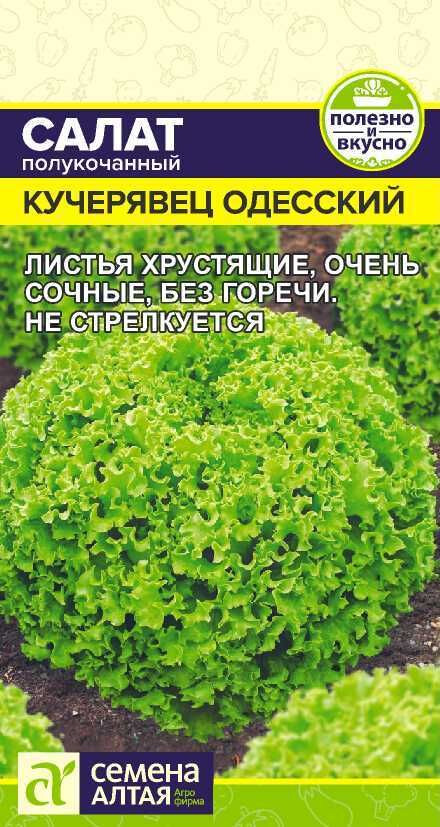 Среднепоздний полукочанный сорт. Один из лучших салатов для выращивания в открытом грунте и под пленочным укрытием. Кочан рыхлый, массой до 200 г. Салат имеет крупные, сочные листья с гофрированными волнистыми краями, без горечи, светло-зеленого окраса. Устойчив к цветушности. Используют в пищу в свежем виде, как для приготовления салатов, так и для оформления закусок и вторых блюд. Место посадки: предпочитает плодородные почвы с нейтральной реакцией. Лучшие предшественники: капуста, картофель, томат, огурец, морковь Освещение: обильное, в жару требуется затенение Предпосевная подготовка: не требуется Сроки посева: высевают в открытый грунт, когда почва прогреется до +12...15°С (с конца апреля, в зависимости от региона), можно высевать на рассаду за 2-3 недели до высадки в грунт. Посев на рассаду: высевают на увлажненный уплотненный грунт в горшочки диаметром 5 см, семена заделывают на глубину 0,5-1 см, накрывают стеклом или пленкой. Оптимальная температура для всходов +17...18°С Посев в грунт: высевают в бороздки на глубину 0,7-1,2 см, на предварительно увлажненный уплотненный грунт, оставляя междурядья 25-30 см. Для сохранения влажности рекомендуется укрыть посевы агроволокном до появления всходов. Всходы прореживают на расстояние 25-30 см Пикировка/перевалка: за неделю до высадки в грунт рассаду закаливают, снижая температуру и уменьшая полив. Рассада должна иметь 5-6 листов. После высадки в грунт обязательно притенение Уход: заключается в поливе, рыхлении междурядий, прополках, подкормках при необходимости Сбор урожая: можно начинать через 1,5-2 месяца после появления всходов. Передержка растения в грунте ведет к накоплению горечи в листьях. Хранить салат нужно при температуре не ниже +1°С