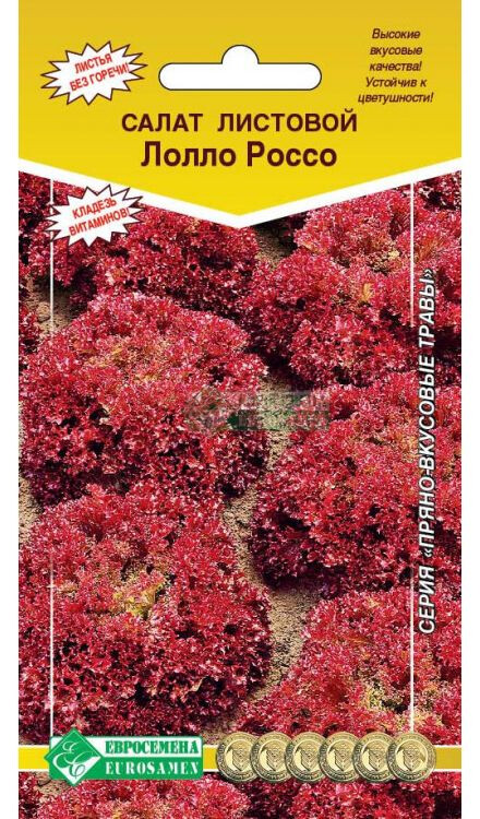 Листовой салат - уникальный по составу продукт. Популярность листьев салата в последние годы сильно выросло. И теперь их воспринимают не только как "листики для украшения" стола, а как сочный и отлично сочетающийся с другими овощами полезный диетический продукт. Разновидности листового салата более 1000 сортов, отличаются они друг от друга не только внешним видом, но и разнообразием микроэлементов и витаминов. Лолло Россо- среднеспелый сорт листового салата для выращивания в открытом грунте и под пленочными теплицами. Розетка листьев полупрямостоячая, высотой 20 см, диаметром 30 см. Лист крупный, красноватый, пузырчатый, сильно волнистый по краю. Консистенция ткани листьев хрустящая. Вкус отличный. Масса растения 325 г. Салат содержит витамины, органические кислоты, практически все минеральные соли, это ценный диетический продукт.