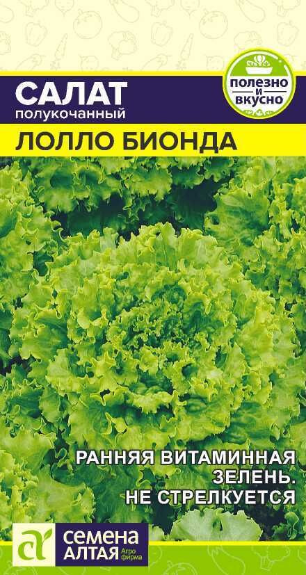 Раннеспелый, урожай можно собирать через 40-45 дней после всходов. Лист нежный, гофрированный, очень декоративный, зеленого цвета. Формирует рыхлую головку диаметром 25 см, массой 150 г. Сорт устойчив к стрелкованию, пригоден для круглогодичного возделывания в открытом грунте и теплицах. Используют в пищу в свежем виде, как для приготовления салатов, так и для оформления закусок и вторых блюд. Место посадки: предпочитает плодородные почвы с нейтральной реакцией. Лучшие предшественники: капуста, картофель, томат, огурец, морковь Освещение: обильное, в жару требуется затенение Предпосевная подготовка: не требуется Сроки посева: высевают в открытый грунт, когда почва прогреется до +12...15°С (с конца апреля, в зависимости от региона), можно высевать на рассаду за 2-3 недели до высадки в грунт. Посев на рассаду: высевают на увлажненный уплотненный грунт в горшочки диаметром 5 см, семена заделывают на глубину 0,5-1 см, накрывают стеклом или пленкой. Оптимальная температура для всходов +17...18°С Посев в грунт: высевают в бороздки на глубину 0,7-1,2 см, на предварительно увлажненный уплотненный грунт, оставляя междурядья 25-30 см. Для сохранения влажности рекомендуется укрыть посевы агроволокном до появления всходов. Всходы прореживают на расстояние 25-30 см Пикировка/перевалка: за неделю до высадки в грунт рассаду закаливают, снижая температуру и уменьшая полив. Рассада должна иметь 5-6 листов. После высадки в грунт обязательно притенение Уход: заключается в поливе, рыхлении междурядий, прополках, подкормках при необходимости Сбор урожая: можно начинать через 1,5-2 месяца после появления всходов. Передержка растения в грунте ведет к накоплению горечи в листьях. Хранить салат нужно при температуре не ниже +1°С