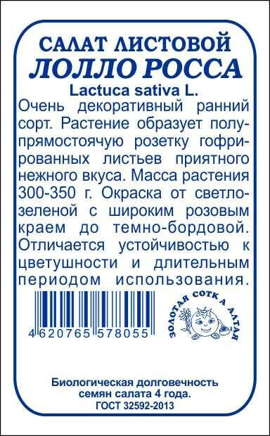 Очень декоративный, устойчивый к цветушности сорт с длительным периодом использования. От всходов до хозяйственной годности 40-50 дней. Розетка листьев полупрямостоячая, высотой около 20 см и диаметром до 30 см. Масса одного растения 300-350 г. Листья крупные, пузырчатые, сильно волнистые с гофрированным краем, сочные, приятного нежного вкуса. Окраска от светло-зеленой с широким розовым краем до темно-бордовой.