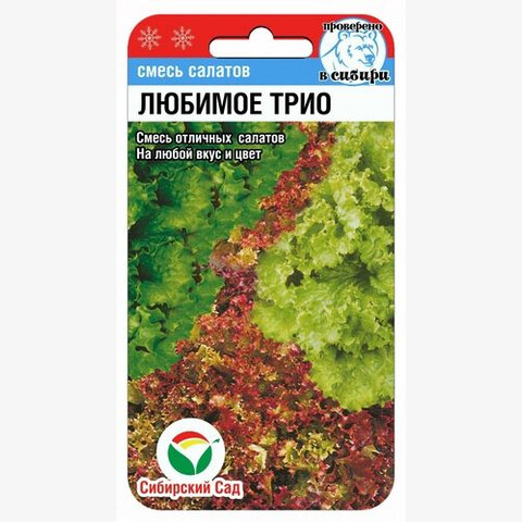 В состав смеси входят три замечательных сорта салата, которые признаны и любимы большинством садоводов. Сорт Азарт- листовой, среднеспелый, скрупной розеткой нежных листьев со слабопузырчатой поверхностью и волнистым мелкозубчатым краем. Сорт Одесский Кучерявец- среднеспелый, полукочанный, с хрустящими, без горечи гофрированными листьями. И среднеранний листовой сорт Лолла Росса- очень полезный из-за содержащегося в нем йода. Кудрявые, гофрированные, красно-розовые листья ЛоллаРосса красиво сочетаются на грядке с зеленой листвой двух других сортов. Посев в грунт можно производить в разные сроки с апреля до августа, через каждые 2-3 недели по схеме 25-30х20-25 см и глубиной заделки семян 1-1,5 см.