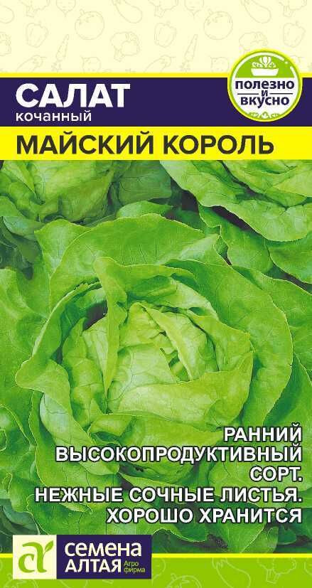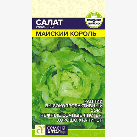 Отличные вкусовые качества. Среднеспелый кочанный сорт. Лист светло-зеленый, поверхность пузырчатая. Консистенция листа масляничная. Кочан округлый, светло-зеленый с розовым оттенком на вершине, массой 130 г. Сорт отличается стабильным урожаем. Место посадки: предпочитает плодородные почвы с нейтральной реакцией. Лучшие предшественники: капуста, картофель, томат, огурец, морковь Освещение: обильное, в жару требуется затенение Предпосевная подготовка: не требуется Сроки посева: высевают в открытый грунт, когда почва прогреется до +12...15°С (с конца апреля, в зависимости от региона), можно высевать на рассаду за 2-3 недели до высадки в грунт. Посев на рассаду: высевают на увлажненный уплотненный грунт в горшочки диаметром 5 см, семена заделывают на глубину 0,5-1 см, накрывают стеклом или пленкой. Оптимальная температура для всходов +17...18°С Посев в грунт: высевают в бороздки на глубину 0,7-1,2 см, на предварительно увлажненный уплотненный грунт, оставляя междурядья 25-30 см. Для сохранения влажности рекомендуется укрыть посевы агроволокном до появления всходов. Всходы прореживают на расстояние 25-30 см Пикировка/перевалка: за неделю до высадки в грунт рассаду закаливают, снижая температуру и уменьшая полив. Рассада должна иметь 5-6 листов. После высадки в грунт обязательно притенение Уход: заключается в поливе, рыхлении междурядий, прополках, подкормках при необходимости Сбор урожая: можно начинать через 1,5-2 месяца после появления всходов. Передержка растения в грунте ведет к накоплению горечи в листьях. Хранить салат нужно при температуре не ниже +1°С