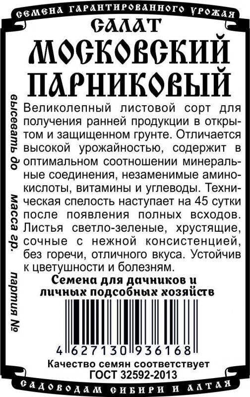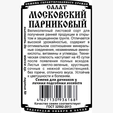 Великолепный листовой сорт для получения ранней продукции в открытом и защищенном грунте. Отличается высокой урожайностью, содержит в оптимальном соотношении минеральные соединения, незаменимые аминокислоты, витамины и углеводы. Техническая спелость наступает на 45 сутки после появления полных всходов. Листья светло-зеленые, хрустящие, сочные с нежной консистенцией, без горечи, отличного вкуса. Устойчив к цветушности и болезням.