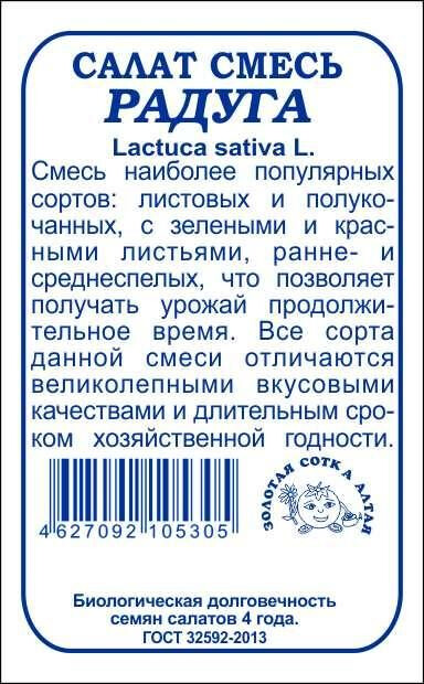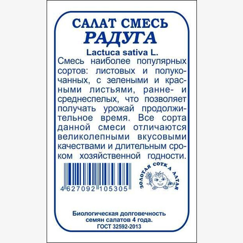 Смесь наиболее популярных сортов: листовых и полукочанных, с зелеными и красными листьями, ранне- и среднеспелых, позволяющая получать урожай продолжительное время. Все сорта данной смеси отличаются великолепными вкусовыми качествами и длительным сроком хозяйственной годности.