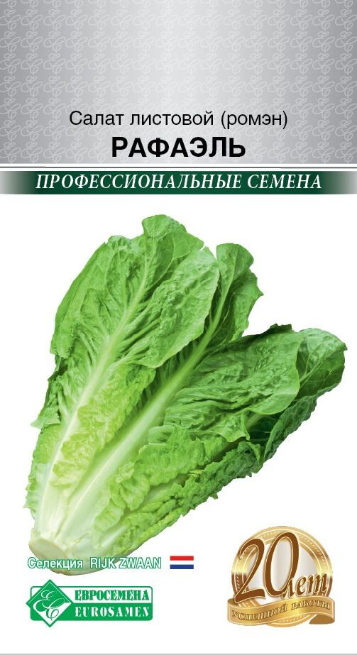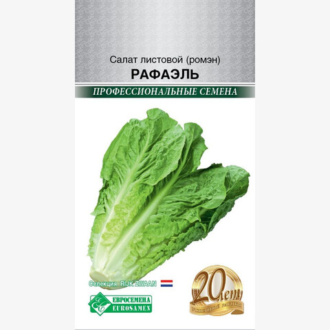 Салат листовой Рафаэль – салат типа мини-ромэн. Это среднеспелый сорт салата для выращивания в условиях открытого грунта, отличается медленным формированием кочана. Кочан округлый, средней плотности. Вкус – нежный и приятный, без горечи. Мини кочаны характеризуются хорошим закрытием, однородностью и внутренним качеством. Сорт формирует прямостоячую или полупрямостоячую розетку крупных листьев обратнояйцевидной формы. Они окрашены в тёмно-зелёный цвет, у них ровные края и пузырчатая блестящая поверхность. Отличается высокой устойчивостью к цветушности и некрозам.