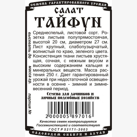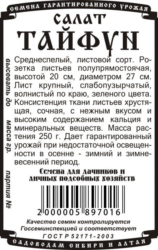 Среднеспелый, листовой сорт. Розетка листьев полупрямостоячая, высотой 20 см, диаметром 27 см. Лист крупный, слабопузырчатый, волнистый по краю, зеленого цвета. Консистенция ткани листьев хрустящая, сочная, с нежным вкусом и высоким содержанием кальция и минеральных веществ. Масса растения 250 г. Дает гарантированный урожай при недостаточной освещенности в осенне - зимний и зимне - весенний период.