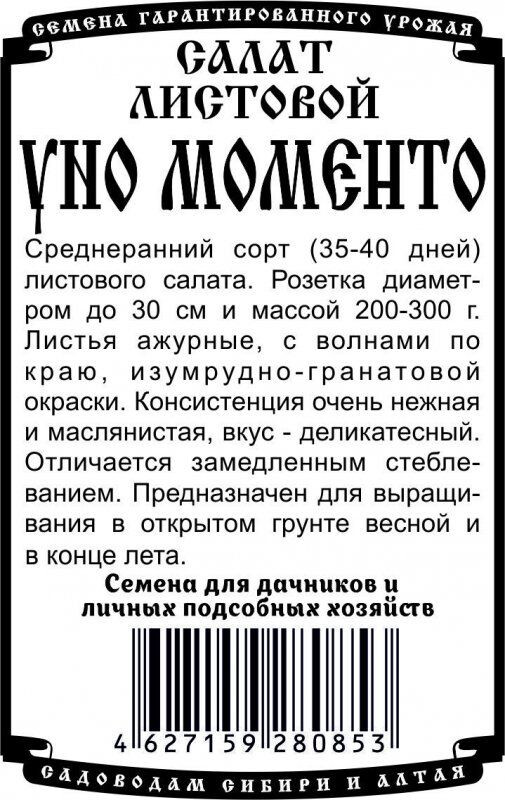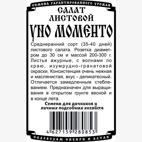 Среднеранний сорт (35-40 дней) листового салата. Розетка диаметром до 30 см и массой 200-300 г. Листья ажурные, с волнами по краю, изумрудно-гранатовой окраски. Консистенция очень нежная и маслянистая, вкус - деликатесный. Отличается замедленным стеблеванием. Предназначен для выращивания в открытом грунте весной и в конце лета.