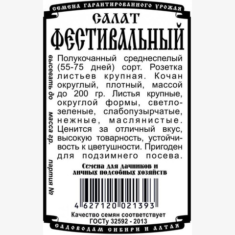 Полукочанный среднеспелый (55-75 дней) сорт. Розетка листьев крупная. Кочан округлый, плотный, массой до 200 гр. Листья крупные, округлой формы, светло-зеленые, слабопузырчатые, нежные, маслянистые. Ценится за отличный вкус, высокую товарность, устойчивость к цветушности. Пригоден для подзимнего посева.