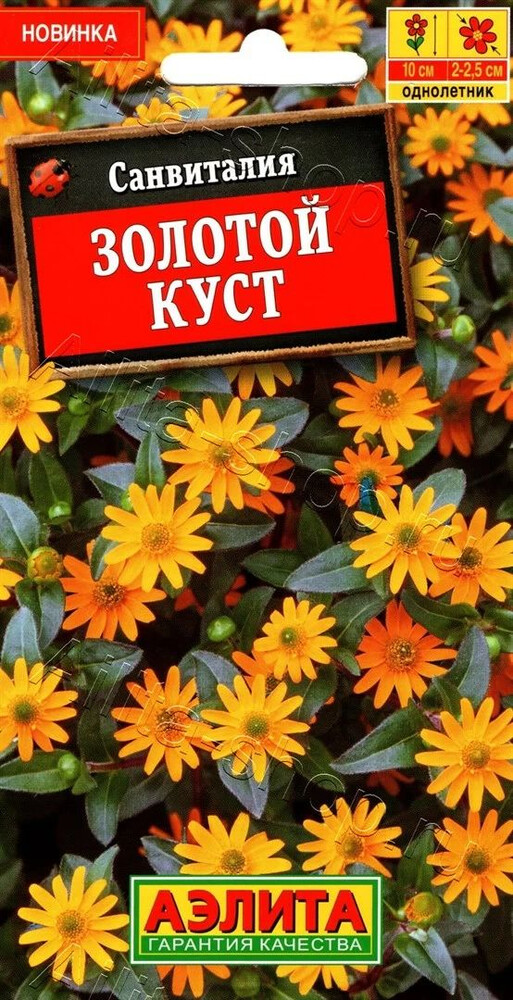 Очень эффектный и яркий стелющийся однолетник. Растение, вы сотой до 10 см, прекрасно разрастается в ширину, до 50 см. Цветки похожие на солнышко, 2-2,5 см, густо покрывают весь куст. Санвиталия прекрасно подходит для создания красочных рабаток, бордюров. Отлично смотрится на каменистых горках, в вазонах и подвесных кашпо. Санвиталия неприхотливое растение. Хорошо переносит небольшую засуху. Предпочитает открытые и солнечные места с умеренно плодородной почвой. Полив умеренный, не переносит застой воды в почве.