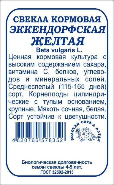 Свекла Кормовая Эккендорфская желт б/п /Сотка/ 3г/ позднесп./*500