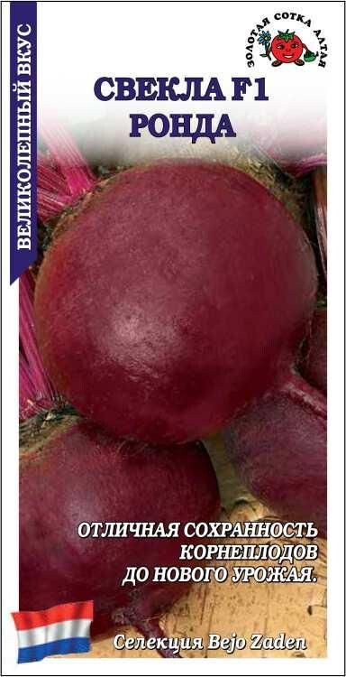 Уникальный среднеспелый гибрид, пригодный для выращивания во всех регионах и прекрасно выдерживающий дефицит влаги. От массовых всходов до созревания 115-120 дней. Розетка листьев полупрямостоячая. Корнеплоды темно-бордовые, округлые, массой 250-350 г. Кожица гладкая и нежная. Мякоть темно-красная, без кольцеватости, великолепных вкусовых качеств, с повышенным содержанием сахара и сухих веществ. Гибрид подходит для всех видов переработки, прекрасно хранится до следующего урожая.