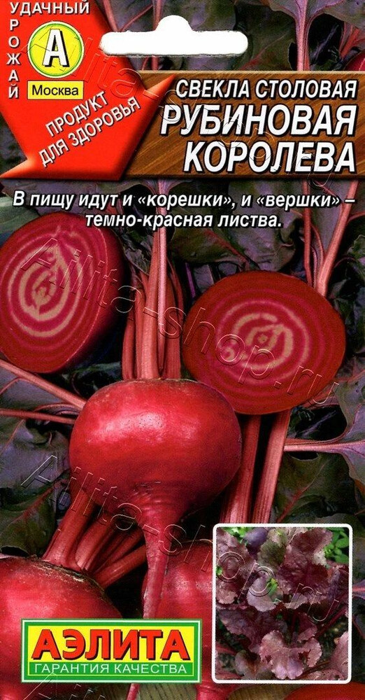 Новинка на российском рынке. Рекомендуется для поклонников здорового питания. Способна удивить любителей экзотики. В пищу пригодны и вершки, и корешки. До 30 дневного возраста молодые растения хороши в бэби салате. Богатые антоцианами, нежные и сладкие листочки «зажигают» салатные смеси ярким, аппетитным видом. Позже их используют для пирогов, запеканок и супов. Корнеплоды Ø 7-8 см имеют кольцеватость. Многие предпочитают готовить борщи именно с такими корнеплодами. В нарезке они напоминают полосатые конфеты. Все части растения обладают антиоксидантной и витаминной активностью.