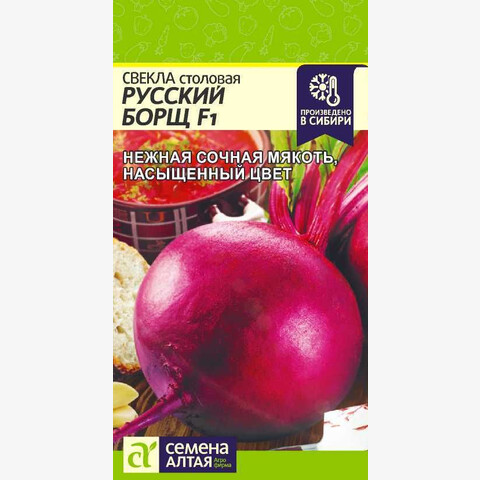 Среднеранний (95-100 дней) гибрид. Корнеплод округлый, массой 120-170 г. Мякоть приятного, темно-бордового цвета, очень сочная и нежная. Гибрид не критичен к почвам. Обладает великолепным свойством - не теряет цвет при термообработке. Место посадки: предпочитает плодородные рыхлые нейтральные почвы. Посев проводят после томата, перца, огурцов, гороха, фасоли Освещение: обильное, плохо переносит затенение Предпосевная подготовка: не требуется Сроки посева: после прогревания почвы до 12..15°С (апрель-май) Посев на рассаду: не предусмотрен Посев в грунт: семена высевают на глубину 2-4 см. Для получения крупных корнеплодов схема посадки 20х45 см. Для средних и мелких корнеплодов посев проводят на расстоянии 3-4 см между растениями и не прореживают Пикировка/перевалка: не предусмотрена Уход: требуется регулярный, но умеренный полив. Хорошо отзывается на внесение фосфорных и калийных удобрений, чувствительна к недостатку бора. При закладке на хранение корнеплоды пересыпают увлажненным песком Сбор урожая: проводят до наступления первых осенних заморозков