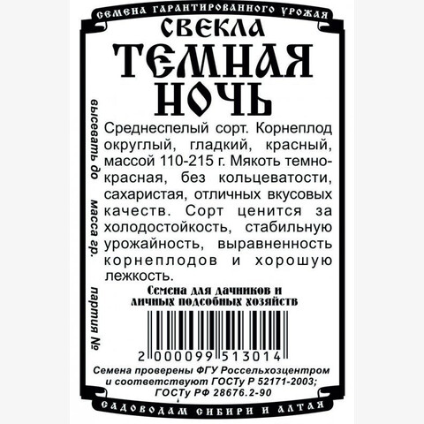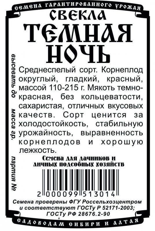 • Среднеспелый сорт. Корнеплод округлый, гладкий, красный, массой 110-215 г. Мякоть темно-красная, без кольцеватости, сахаристая, отличных вкусовых качеств. Сорт ценится за холодостойкость, стабильную урожайность, выравненность корнеплодов и хорошую лежкость.