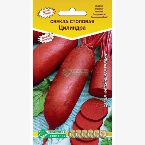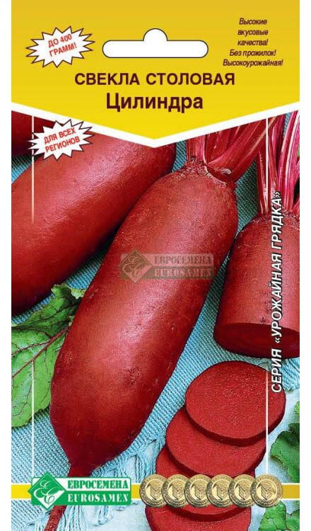 Свекла – овощ, который несет огромную питательную ценность для человеческого организма. Из нее можно приготовить множество блюд, самые знаменитые из них – это свекольник и винегрет. Выращиванием овощной культуры занимается практически каждый дачник. Свекла применяется не просто как продукт питания, а как лекарственное средство. Она составляет конкуренцию даже зарубежным дорогостоящим витаминным комплексам, содержание полезных веществ и микроэлементов очень высокое. Цилиндра- среднепоздний, высокоурожайный сорт для потребления в свежем виде, переработки и хранения. Период от полных всходов до технической спелости 110-130 дней. Корнеплоды цилиндрической формы, выровненные, темно-бордового цвета, без прожилок. Мякоть нежная. Средний вес корнеплодов 180-400 г. Обладает высокими вкусовыми качествами.