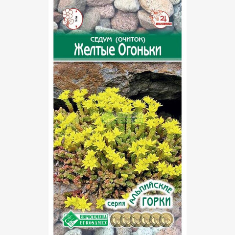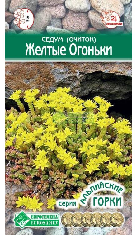 Очиток едкий- травянистое секкулентное растение семейства Толстянковые с ветвистым корневищем и мелкими листиками, расположенными черепитчато, золотистого оттенка звездочками-цветками. Происхождение русского названия рода очиток обосновано лекарственными свойствами очитка едкого, очищать кожу от бородавок, экзем, фурункулов. Очистить кожу мог очисток, но в народе прижилось измененное наименование растения очиток. Все очитки называют еще и седумами, благодаря их латыни. Существует множество народных названий этого растения: молодило острое, скрипун, живучка, плёточка, каменный перец, птичий хлеб, бородавчатая трава. Благодаря своей необыкновенной окраске он украшает клумбы и альпинарии, с весны до поздней осени. Растение расстилается великолепным ковром, прекрасно решая задачу украшения и декорирования альпийских горок и альпинариев.