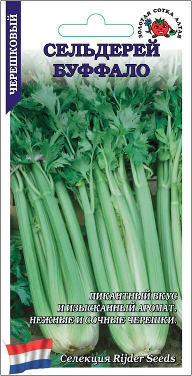 Сорт ранний (35-40 дней), высокоурожайный и жаростойкий, устойчив к гнили сердечка. Растение компактное, черешки зеленые, нежные и сочные, практически не имеют волокон и обладают пикантным вкусом и изысканным ароматом. Используют в свежем и сушеном виде в кулинарии, для засола и маринования.
