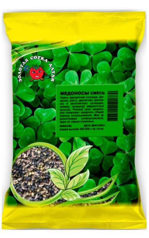 Смесь однолетних (горчица, фацелия, рапс), двулетних (донники) и многолетних (эспарцет, клевер, люцерна) медоносных культур. Разный срок зацветания позволяет продлить общий период использования. Мед из разнотравья универсальный, один из самых полезных. НОРМА ВЫСЕВА: 400-600г на сотку.