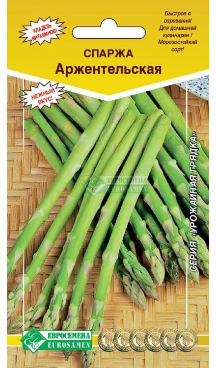 Гурманы и любители правильного питания давно обратили внимание на спаржу, или аспарагус. Спаржа Аржентельская относится к группе деликатесных продуктов питания, цена на которые в большинстве случаев завышена. Регулярная покупка вкусного и не менее полезного деликатеса доступна далеко не каждому. Однако есть и альтернативный способ, позволяющий на постоянной основе баловать себя вкусными блюдами – заняться самостоятельным ее выращиванием. Спаржа сорта Аржентельская — это среднераннее многолетнее травянистое растение высотой около 1,5–1,7 м. Побег, вырастающий из корневища, начинает ветвиться на высоте около 20 см от земли, веточки 2–3 порядка усыпаны мягкими иголочками длиной около 10 мм. Отрастание побегов начинается в первой-второй декадах мая. Урожайность отбеленных побегов составляет 0.10–0.36 кг/м 2. В конце лета на растении появляются круглые семенные коробочки, диаметром 4–5 мм, краснеющие по мере созревания. К положительным свойствам сорта относятся: морозостойкость, быстрое созревание, нежный вкус.
