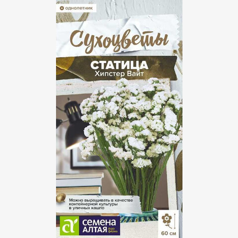 Эффектный однолетник, используемый на срезку в букеты и в качестве сухоцвета. Растение высотой до 60 см, формирует прямостоячие кустики шириной до 35 см. Белые цветки собраны в щитковидные соцветия, длительное время сохраняют форму и окраску в высушенном состоянии. Культура отлично подходит для ландшафтного дизайна, можно выращивать в уличных кашпо и балконных ящиках. Свето- и теплолюбивое засухоустойчивое растение. Неприхотливо в выращивании. Отлично растет на любой садовой почве. Посев семян на рассаду проводят в конце февраля - начале марта в торфяные горшочки, т.к. растение плохо переносит пересадку. Перед посевом их на несколько часов замачивают теплой водой. Горшочки наполняют влажным рыхлым стерильным субстратом, раскладывают семена (по одному семечку в каждый горшок), сверху заделывают слоем грунта 0,2-0,3 см. Посевы увлажняют, накрывают стеклом и содержат при температуре +16-21?C, периодически открывая для проветривания и удаления конденсата. Всходы появляются через 10-18 дней, укрытие снимают. В середине апреля начинают проводить закаливание: ежедневно выносят емкости с сеянцами на открытый воздух, постепенно увеличивая временной интервал. Высадка рассады в открытый грунт проводится, когда минует угроза заморозков. Высаживают вместе с торфяными горшочками, посадочный интервал – 30-40 см. Цветение длится с июля до заморозков.