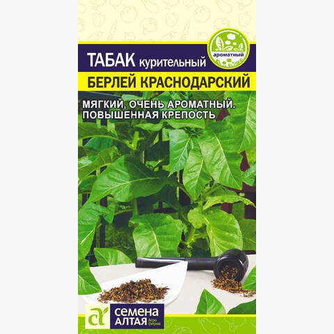 Среднеспелый (период от посадки рассады до последней ломки 110 дней) сорт со средним содержанием никотина 2,11%. Растение овальное, с приподнятыми листьями. Лист сидячий, широкоовальный, желто-зеленый. Пластинка листа дугообразно изогнута, поверхность слегка вспученная. На растении в среднем формируется 29 технически пригодных листьев длиной 50 см, шириной 22 см. Урожайность воздушно-сухих листьев 24,1 ц/га, выход первого товарного сорта 87,8%. Сорт устойчив к черной корневой гнили, вирусу табачной мозаики, бактериальной рябухе, белой пестрице. Обладает повышенной крепостью, запах таких изделий мягкий, очень ароматный. Место посадки: предпочитает питательные легкие почвы без застоя влаги, защищенные от ветра места. Не стоит выполнять посадку после: картофеля, томатов, перца, баклажанов, петуний и др. пасленовых Освещение: обильное, ажурная полутень Предпосевная подготовка: не требуется Сроки посева: на рассаду высевают за 7-8 недель до высадки в грунт, февраль-март Посев на рассаду: высевают рядками на уплотненный грунт, предварительно пролитый горячей водой (+80...90°С) - грунт при посеве должен быть еще горячим. Для удобства посева семена можно смешать с песком или вермикулитом. Посевы увлажняют из распылителя, накрывают стеклом или прозрачной пленкой до появления всходов. Оптимальная температура для всходов +25…28°С, всходы появляются через 5-10 дней. При недостатке естественного освещения рекомендуется организовать досветку Посев в грунт: не предусмотрен Пикировка/перевалка: в стадии 2-4 настоящих листьев в отдельные емкости 0,5 л (обязательны дренажные отверстия), при освоении корнями объема грунта выполняют перевалку в больший объем Высадка в грунт: когда минует угроза возвратных заморозков, а почва прогреется до +10…12°С (в середине – конце мая, начале июня). Посадочное расстояние 50-70 см. Желательно провести закалку рассады, после высадки необходимо притенение в течение 5-7 дней Уход: умеренный полив, прополка и рыхление междурядий, подкормки при необходимости, удаление пасынков Сбор урожая: с середины июля, срезают отдельные листья, когда они начинают желтеть. Уборку лучше выполнять в сухую погоду, далее сырье подвергают ферментации и сушке