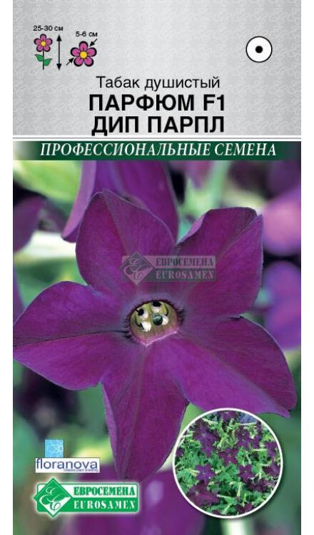 Nicotiana х sanderae Pеrfume F1 Deep Purple Табак Сандер – замечательное растение, которое радует своим непрерывным цветением до поздней осени. Серия Парфюм - идеальный выбор табака для производства ранней цветочной продукции в кассетах и горшках, это однолетний садовый гибрид, выровненный и однородный, который отличается от табака крылатого более крупными цветками. Габитус растений компактный, с отличным ветвлением, усыпан яркими, направленными вверх, цветками глубокого насыщенного темно-пурпурного оттенка. Цветы звездчатые с нежным ароматом, который особенно чувствуется теплым летним вечером. Разрастается в ширину до 35 см. Широко применяется в групповых посадках и рабатках. Цветение обильное с июня по октябрь, его можно повторить в комнатных условиях и зимой, для чего осенью его нужно пересадить в горшок, провести обрезку отцветших соцветий, обеспечить достаточно света и умеренный полив.