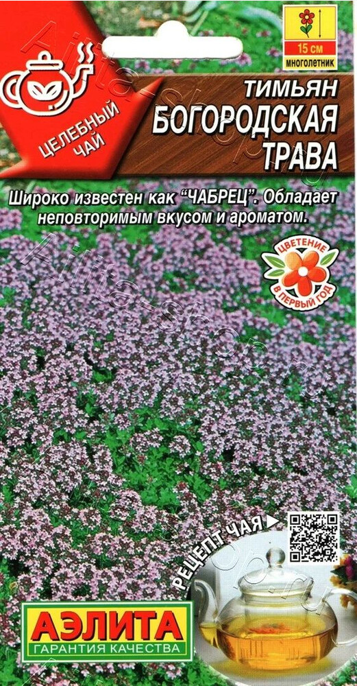 Неприхотливый многолетник, одинаково популярный в кулинарии, медицине и садоводстве. Широко известен как чабрец. Кустики высотой 10-15 см, со стелющимися тонкими стеблями. Они быстро разрастаются, заполняя вокруг себя всё свободное пространство. Отличный медонос. Все части растения имеют неповторимый, очень приятный терпкий аромат, и подходят для заготовки сырья. Используют тимьян в свежем и сушеном виде. Собирать зелень можно с мая по октябрь. Чай с чабрецом – один из самых любимых напитков во всем мире.