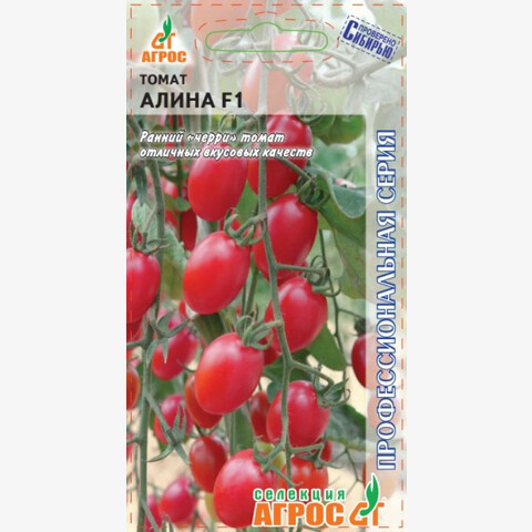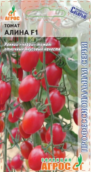 Томат - черри. Гибрид очень раннего срока созревания. Растение индетерминантное. Кисть длинная. Первое соцветие располагается над 8-9 листом. Плод сливовидной формы, средней массой 18 г, гладкий, плотный, красивой розовой окраски, хорошо сохраняются на кусту. АЛИНА F1 отличается ранним и дружным созреванием плодов, отличными вкусовыми качествами. Использование плодов - универсальное.