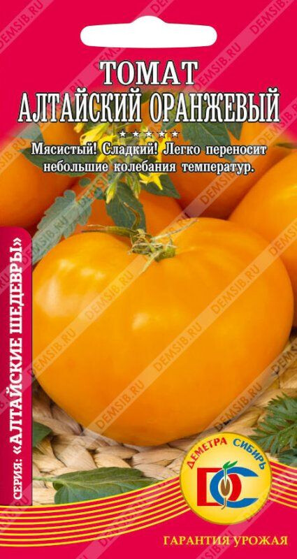 Среднеспелый высокоурожайный сорт для открытого грунта и пленочных укрытий. Растение индетерминантное. высотой до 150 см. Плоды ярко-оранжевые, плоскоокруглые, массой 250-500г, плотные, мясистые, великолепного вкуса. Для потребления в свежем виде и приготовлении зимних заготовок.