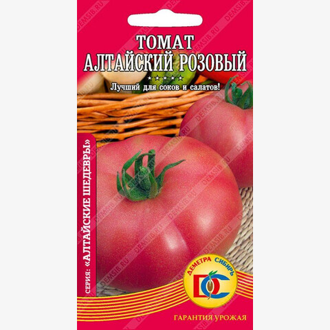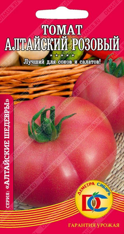 Один из самых популярных среднеспелых сортов для открытого грунта и временных укрытий. Растение индетерминантное, высотой 100-150 см. Плоды розовые, плоско-округлые, массой до 500 гр., мясистые, сочные, сладкие. Сорт ценится за высокую урожайность и отменное качество плодов.